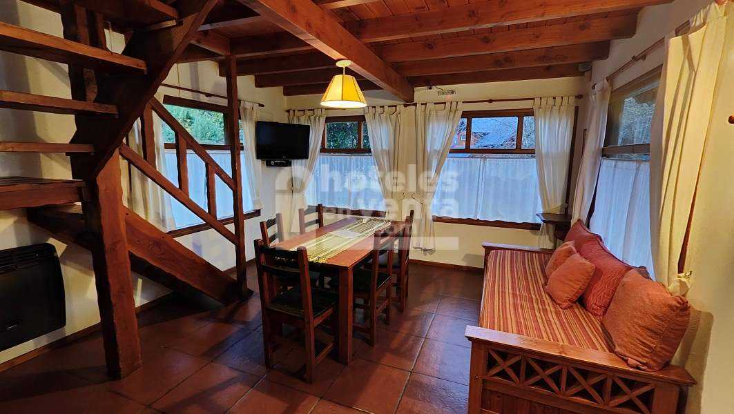 🔸Modelo 4: 5 cabañas para seis personas. Tipo dúplex. Planta baja con comedor con cocina integrada, baño con ducha. Primer Piso: dos dormitorios y baño con bañera hidromasaje.