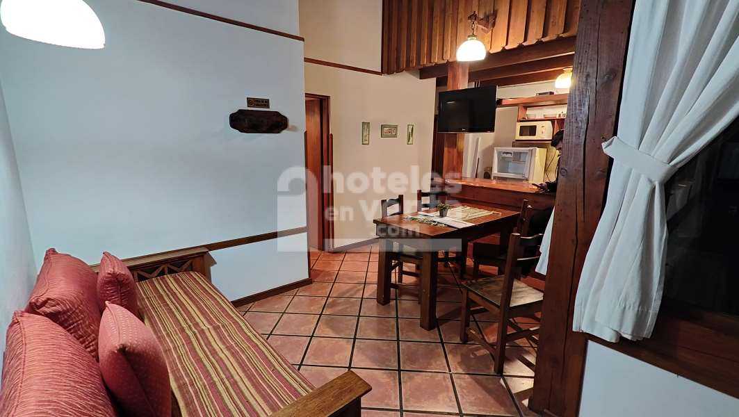 🔸Modulo 2: 4 departamentos ubicados al ingreso del complejo, frente al estacionamiento principal . Vistas al cerro López. Acceso por escalera ya que su ingreso presenta un deck de madera. Dos monoambientes (para tres / cuatro personas) con cocina integrada y baño amplio con bañera. Dos tres ambientes para cuatro personas: cocina comedor, dos dormitorios, baño con bañera. Uno de ellos tiene habitación en suite